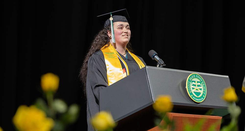Important: Students must submit an application for graduation with the Office of the University Registrar by the appropriate deadline to be recognized in the commencement program.